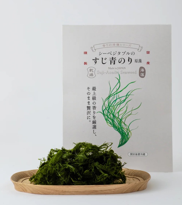 賞味期限が近いため20%OFF 最上級の香りを厳選し、そのまま贅沢に。 私たちが育てているすじ青のりの中でも、全体の1%に満たない選りすぐりのすじ青のりだけを贅沢に使用。 すじ青のりの香りや素材感をそのまま味わっていただくため、本来の姿の「原藻(すじ状)」でお届けします。 口に入れた瞬間ふわりと香る、最上級の香りをお楽しみください。