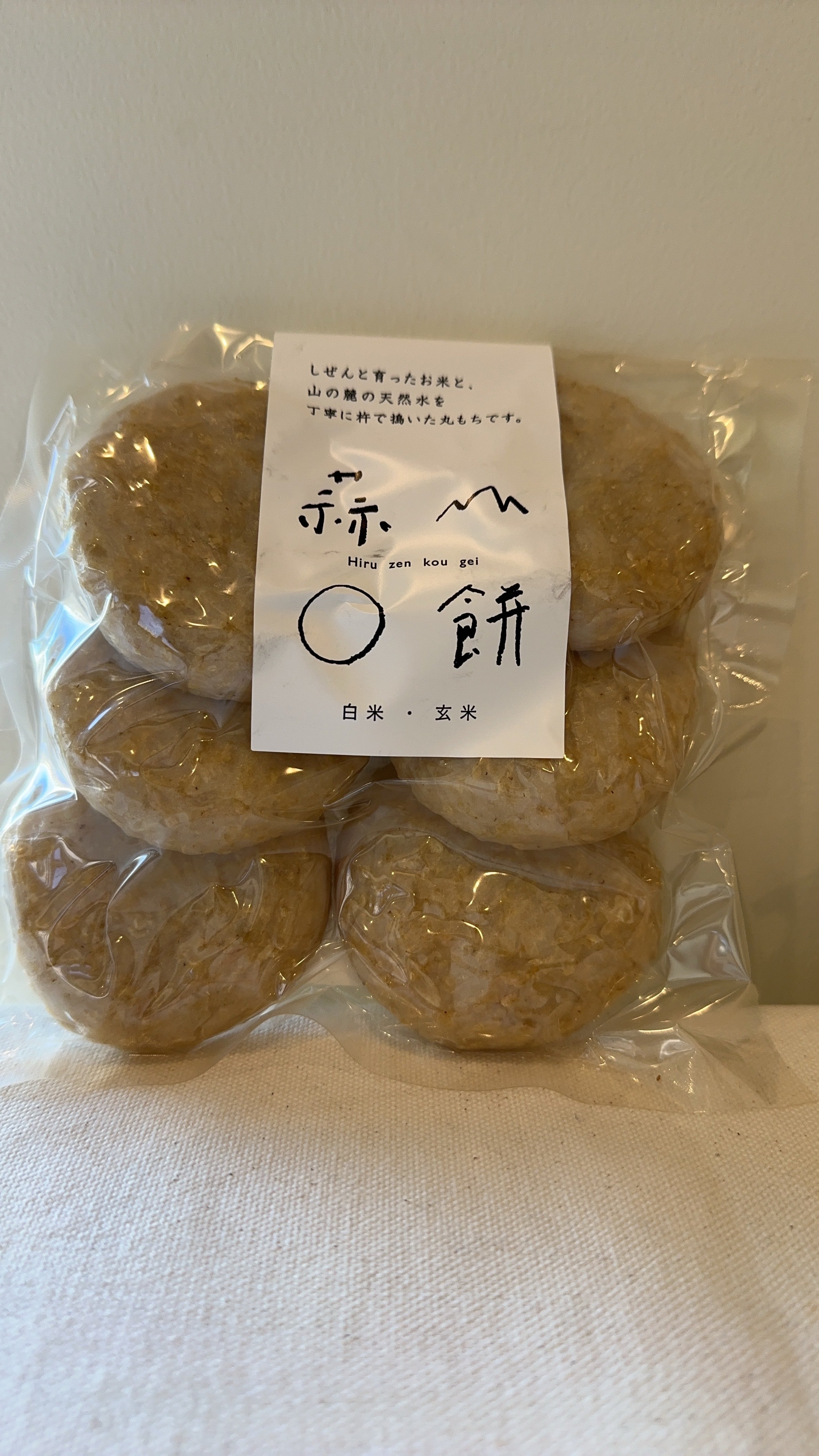 届き次第の発送となります。12/7ごろ入荷予定。 蒜山耕藝 ○餅 玄米 6個入り 自然と育ったお米と、山の麗の天然水を丁寧に杵で搗いた丸餅です! 6個入り