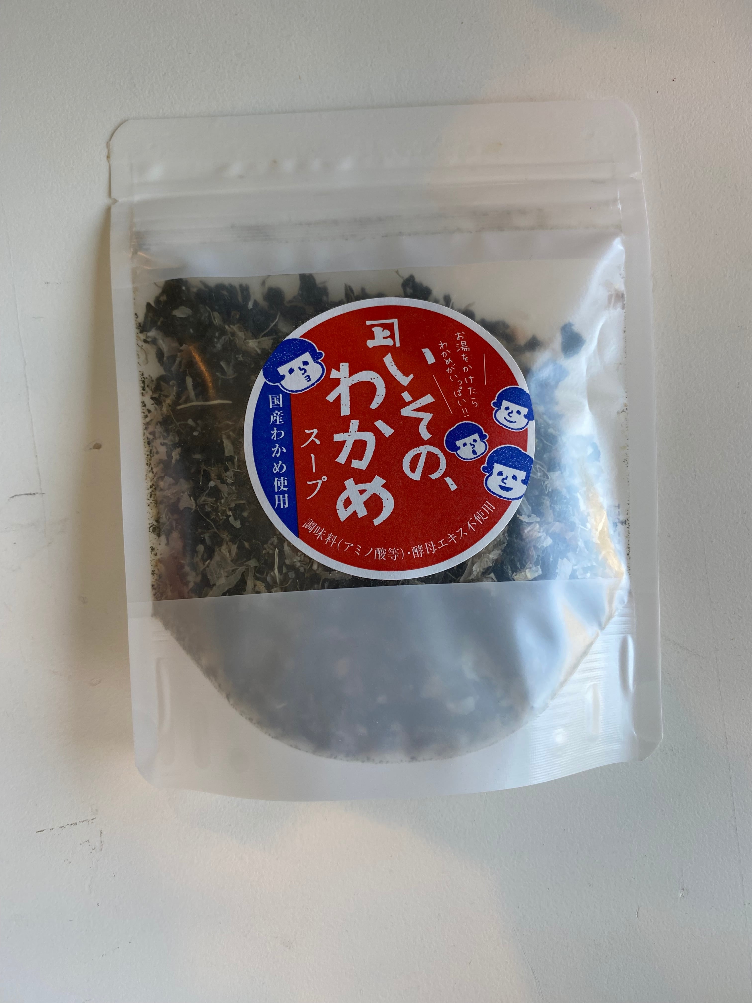学調味料・エキスを使わず国産原料を使ってつくったスープ。いわし削りとかつお節、昆布のダシをきかせた和風味。お湯をそそげば出来上がります