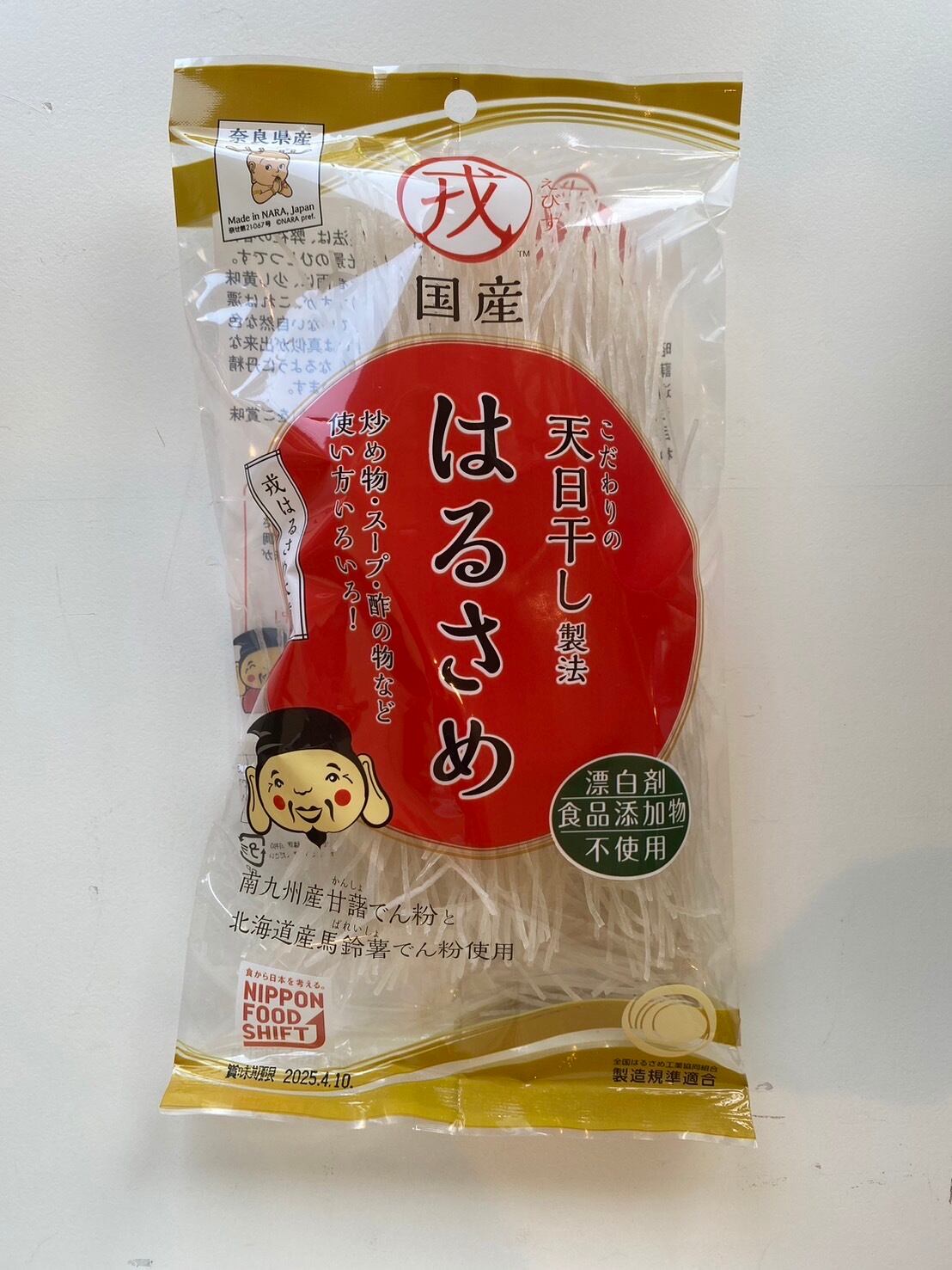 食品添加物不使用。昭和38年創業。南九州産の甘藷(さつまいも)でんぷんと北海道南十勝産の馬鈴薯(じゃがいも)でんぷんを原材料に、弊社の目指す春雨になるよう吟味を重ねこだわり抜いています。