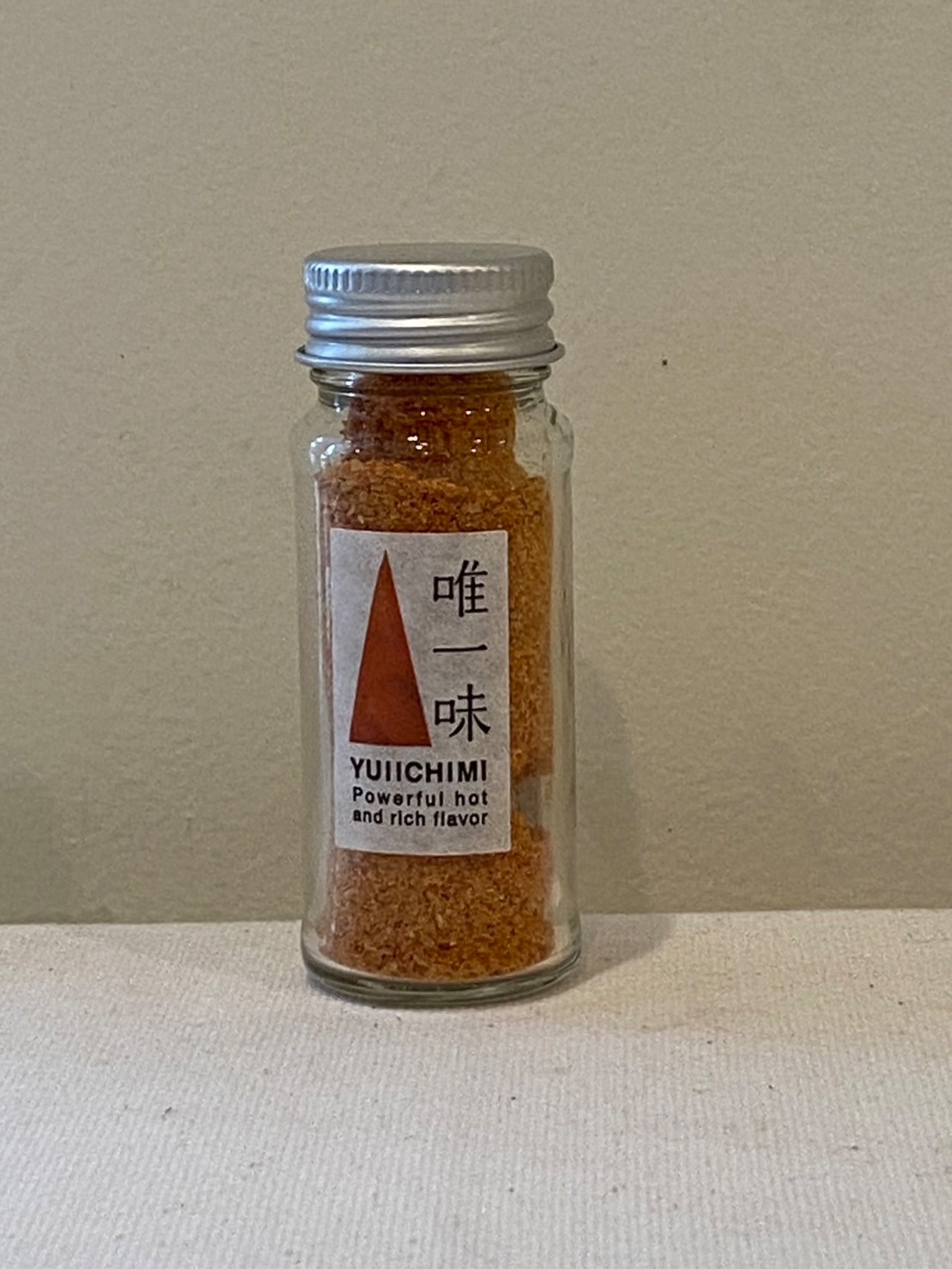 唐辛子を粉状に挽き、種も細かくなって入っています。鮮烈な辛さです。綺麗な”朱赤”が特徴で、お料理を鮮やに彩ります。