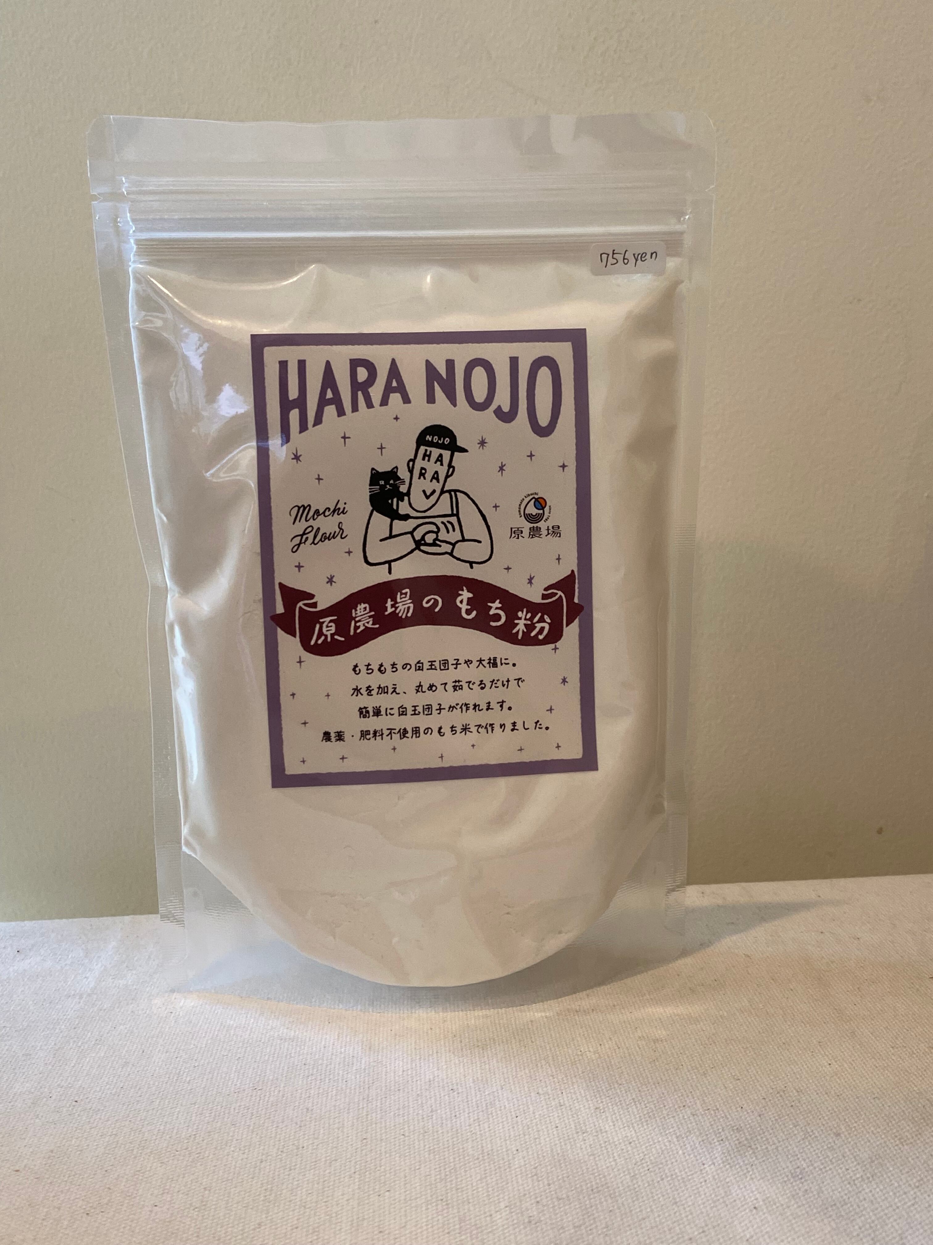 原農場のもち粉 400g 農薬、肥料を使用せずに栽培した、クレナイモチという品種のもち米を精米して自家製粉しました。 なめらかでもちもちとした食感になります。