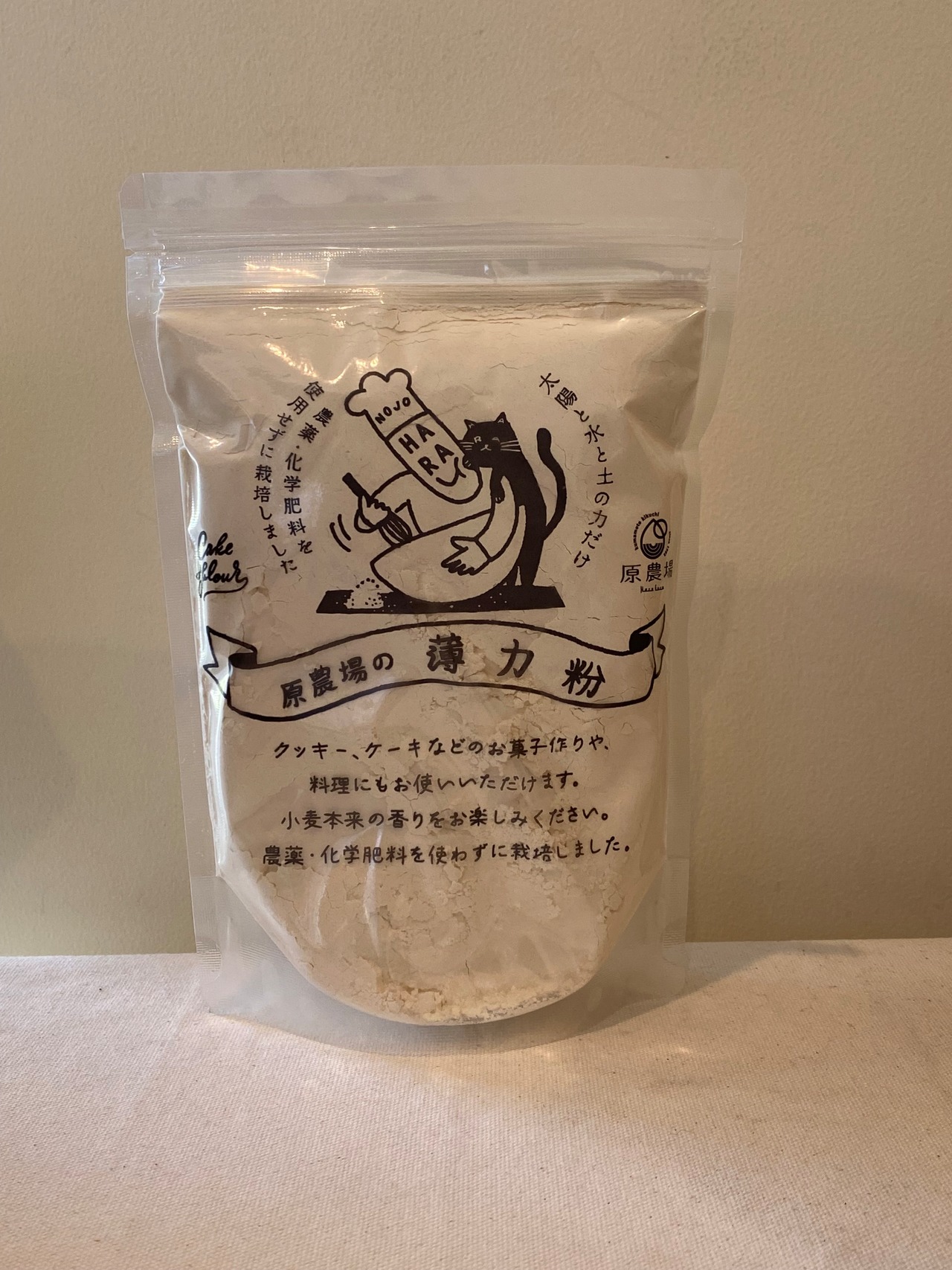 原農場で農薬、化学肥料を使用しないで栽培した「シロガネコムギ」という品種の小麦を製粉しました。