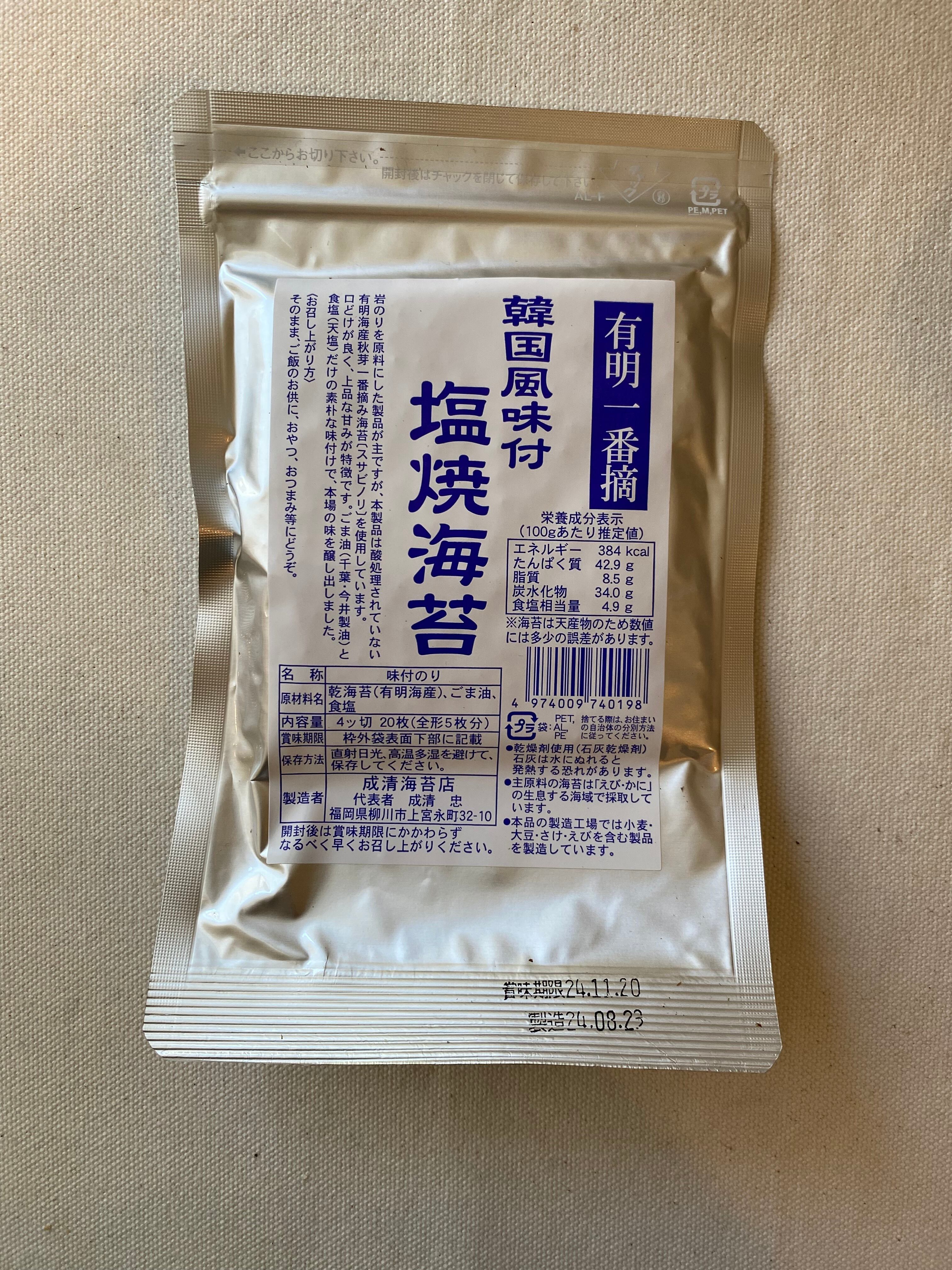 成清海苔店 韓国風味付 塩焼海苔 全形5枚分 4つ切20枚入