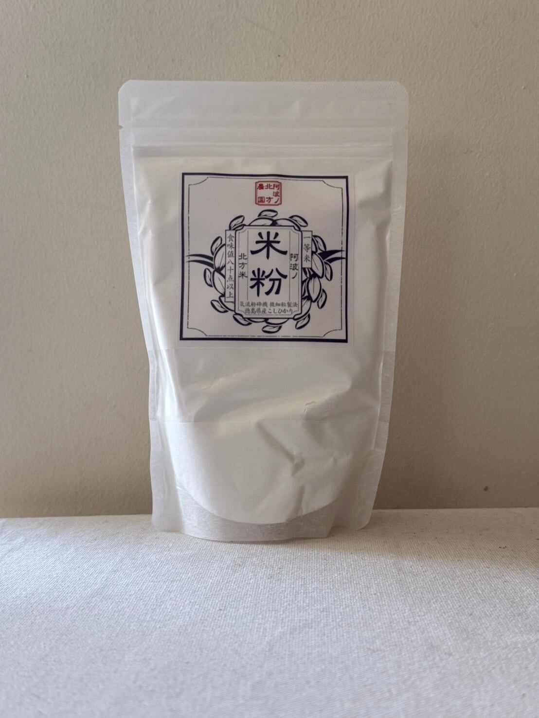 食味値80点以上の一等米、特別栽培米「阿波ノ北方米」を湿式気流粉砕法という特殊な粉砕法で超微粒子の米粉です。