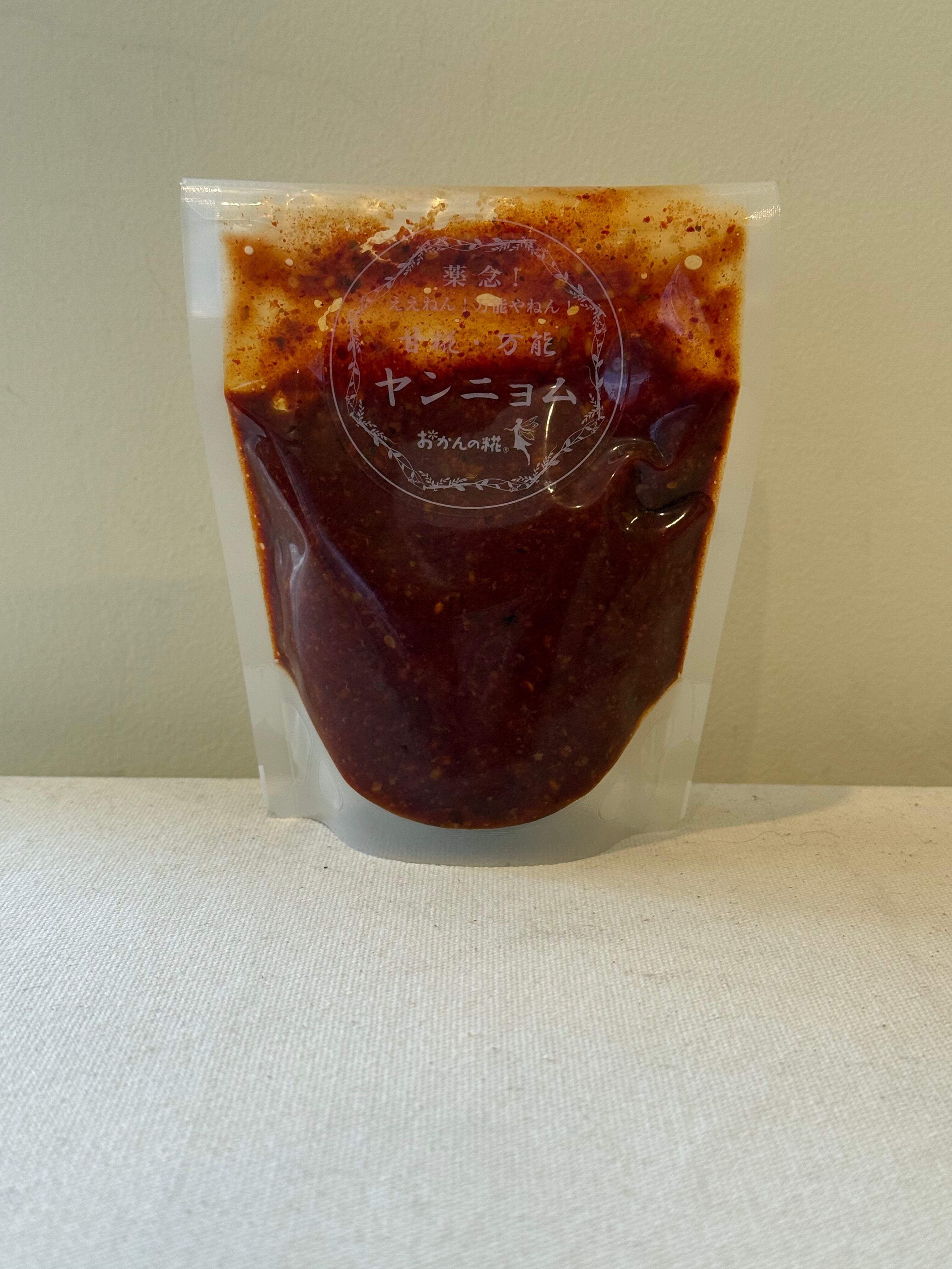 弊社の糀室にて、丁寧に育てた糀を濃厚な甘酒に非加熱加工し濃厚甘酒・フルーツ・野菜各種・魚醤(いかなご)・上質な唐辛子をブレンドし、化学調味料・砂糖・水飴等も一切使用せずに独自発酵させた、甘辛美味しい万能おかずみそです。